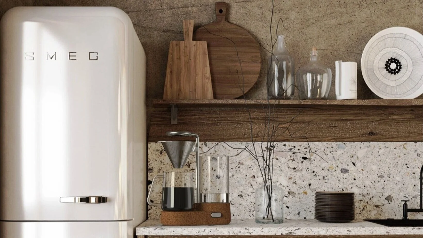 The combination of cork, glass, and recycled aluminum create for a minimal and natural aesthetic that is also recyclable